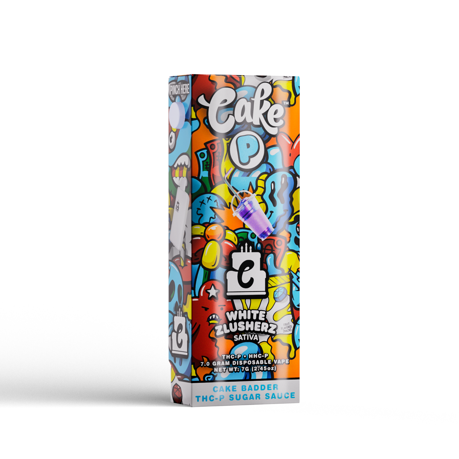 Discover a vibrant vaping experience with the Cake 7G Disposable Vape in White Zlusherz, a flavorful Sativa strain that delivers an invigorating burst of zesty citrus balanced by sweet and juicy fruit notes. This tangy and refreshing flavor profile makes every puff a sensory delight, perfect for uplifting your mood and energizing your day.